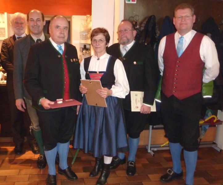 Bei der Jahreshaupt-versammlung des Gebirgstrachten-erhaltungs- und Schuhplattler-vereines "D´Grünbergler" Frankenburg a.H., am 21. Jänner 2012, konnte Landesverbandsobmann Kons. Hans Baumann Margit Scherndl mit mit dem "Ehrenzeichen des LVB der Heimat-und Trachtenvereinigungen Oö." auszeichen (Bild links).