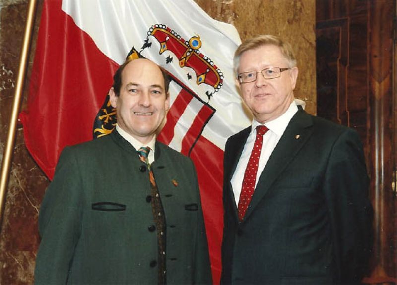 Alle Gäste, darunter auch Kons. Hans Baumann als Verteter der Heimat- und Trachtenvereine Oö., wurden vom 1. Präsidenten des Oö. Landtages persönlich begrüßt.